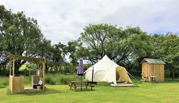 There are just three beautiful Lotus Belle bell tents onsite, ensuring a sense of exclusivity. Each tent is furnished with proper beds (a double and 2 singles) made up ready for your arrival. Cosy, thick, soft duvets, fluffy blankets, hot water bottles, tea-lights and fairy lights all add to the homely feel. For a family of 5 there is ample room to bring your own single blow up mattress, or a travel cot can be provided for a little one. The site is also perfect for whole site bookings by family groups, enabling children to play freely whilst the adults sit back and relax.