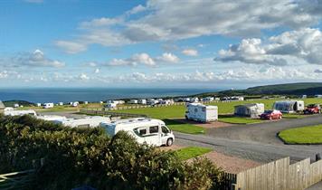 Situated on a headland on the beautiful North coast of Devon, the campsite has outstanding sea views - on a clear day, you can see the coast of South Wales, some 24 miles north, across the Bristol Channel! The campsite has much more than views to offer though. As orderly as it is expansive, it has two heated shower blocks maintained to a markedly high standard, including family bathrooms, disabled shower rooms, laundry facilities, washing up sinks and wetsuit washrooms.