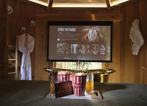 Switch off and have a long lie in your super king-sized four-poster bed with luxury savoy bedding, feather-down pillows, Hypnosis Mattress and Devon duvets. Spend a day in your fluffy robe, with a coffee on the terrace overlooking secluded valley listening to the sounds of nature. Or treat yourself to an indulgent movie night with a cinema projector and drop-down screen in your bedroom, perfect for Netflix marathons.