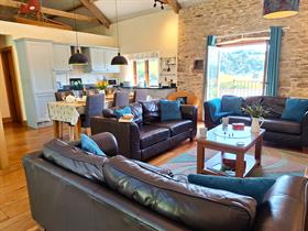 Access can be made available by prior arrangement between Nutcombe Barn and Cider House which links the upstairs space of the two properties if required. The two properties can thus be taken together with five en-suite bedrooms sleeping 10 in total. Ideal for large family holidays, special occasions and perfect for Christmas gatherings.