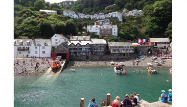 Clovelly has two hotels: the 400 year old New Inn, in the heart of the village and the C18th Red Lion on the quay, which provide delicious lunches, dinners and Devon cream teas. There is the Quay Shop at the harbour for take-aways to enjoy on the quay while watching the harbour traffic come and go. Boat trips are available to take you along the dramatic coastline.