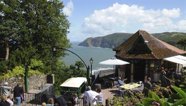 Our Cliff Top Café is a Grade II listed building perched high on the cliff top with spectacular views across Lynmouth Bay. It is perhaps the most beautiful location for a Traditional Devon Cream Tea in the West country. The Cliff Top Café offers a range of freshly prepared sandwiches, homemade cakes, light lunches and vegetarian, vegan and GF options to eat in or take away; we're licensed for the sale of alcohol with a choice of prosecco, wines and local ales, and of course we do soft drinks and freshly ground coffee too. The Cliff Top Café has a five star hygiene rating, level access, free WiFi, WC facility and well behaved dogs are welcome too.